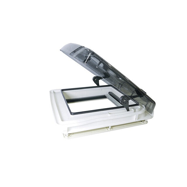 Die REMItop Vista Dachhaube 40 x 40 cm kombiniert Schutz, Belüftung und Privatsphäre. Die getönte Außenscheibe reduziert Blendung und Blicke von außen, während die eingebaute Zwangsbelüftung für kontinuierlichen Luftaustausch sorgt.