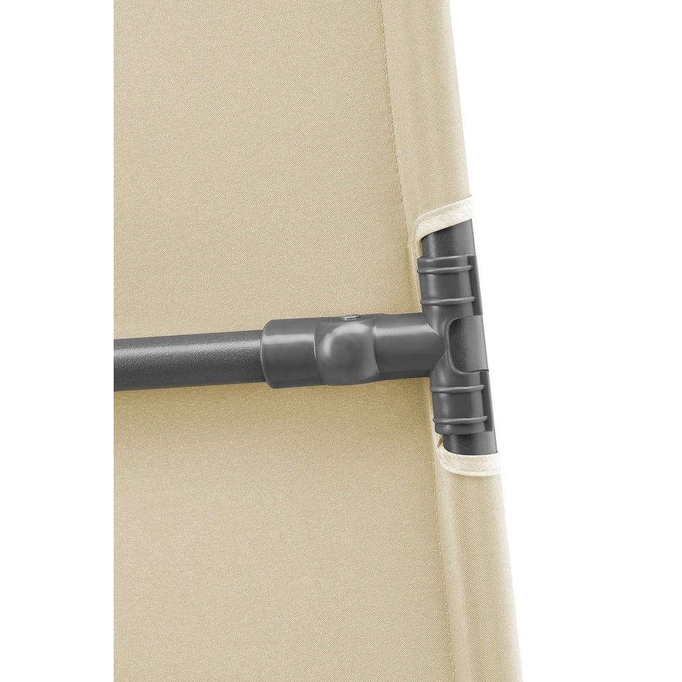 Der Sonnenschirm Avellino von SCHNEIDER SCHIRME kombiniert kompaktes Design mit langlebigen Materialien. Das verrottungsfeste Polyestergewebe in Natur schützt zuverlässig vor Sonne und ist besonders pflegeleicht – ideal für Balkon, Terrasse und Garten.