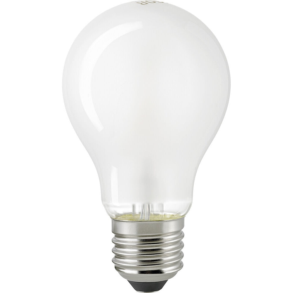 Elegante SIGOR LED Filamentlampe 7W (E27) mit mattem Finish – ideal als energiesparender Ersatz für 60W-Glühlampen. Warmweißes Licht (2.700 K) sorgt für gemütliche Atmosphäre, während die hohe Farbwiedergabe (Ra>90) natürliche Farben betont.