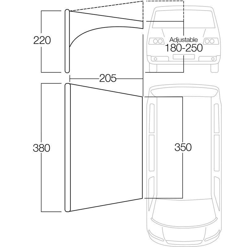 Das Vango Air Beam Sonnensegel mit einer Länge von 3,5 m bietet Ihnen perfekten Schutz und Schatten für Ihr Caravan oder Wohnmobil. Das hochwertige Polyester (PES) Material verfügt über eine beeindruckende Wassersäule von 6.000 mm, sodass Sie auch bei ungünstigen Wetterbedingungen trocken bleiben. Mit einem leichtgewichtigen Design von nur 5,7 kg und kompakten Packmaßen (23 cm Breite, 28 cm Höhe, 68 cm Länge) ist das Sonnensegel mühelos zu transportieren und aufzubauen.