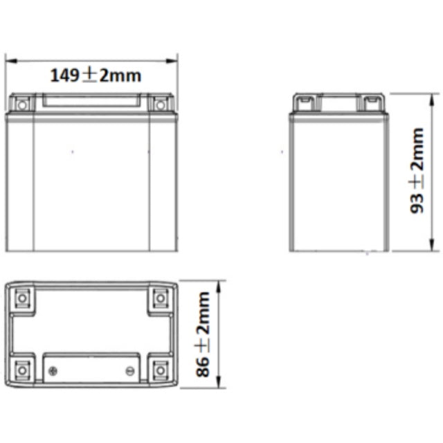 Technische Maße: Breite 14,9 cm, Höhe 9,3 cm, Tiefe 8,6 cm. Die All‑in‑One-Lösung spart Installationszeit: Batterie, Power‑Management und Anschlusszubehör sind aufeinander abgestimmt und sofort montierbar.