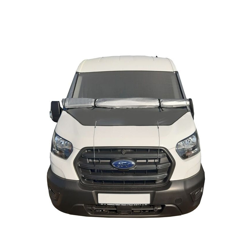 TECON COVERCRAFT Isolux Außenisoliermatte – speziell entwickelt für den Ford Transit (ab 2014) mit abklappbarer Front. Die robuste Isolux-Matte bietet zuverlässigen Schutz gegen Kälte, Hitze und Feuchtigkeit und ist ideal für Kastenwagen im Außenbereich.
