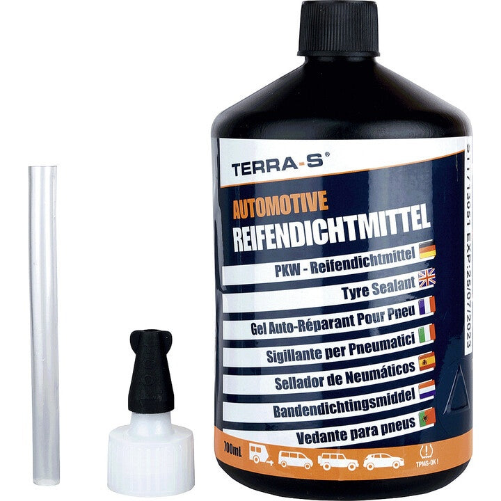 - Die Universelle Nachfüllflasche TERRA-S mit 700 ml bietet eine effektive Lösung zur Dichtung von Reifenpannen.