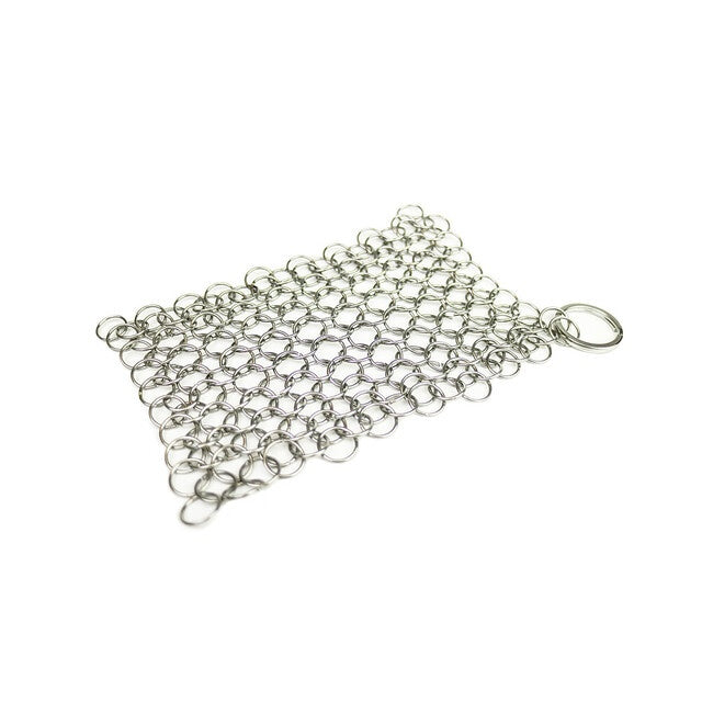 Der Ringreiniger von Valhal Outdoor ist der perfekte Küchenhelfer für Ihre Gusseisenpfannen. Mit geflochtenen Edelstahlringen entfernt er selbst hartnäckige Essensreste, ohne die schützende Patina zu beschädigen. Der Ringreiniger ist mehrfach wiederverwendbar und leicht zu reinigen.