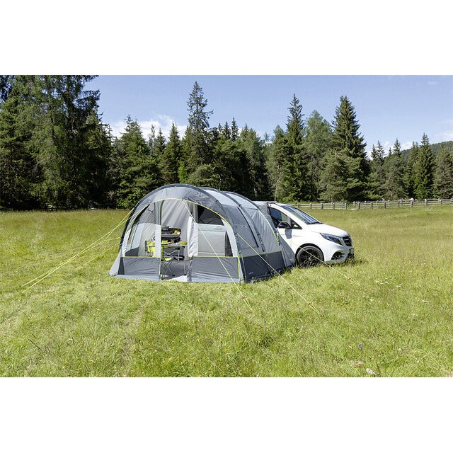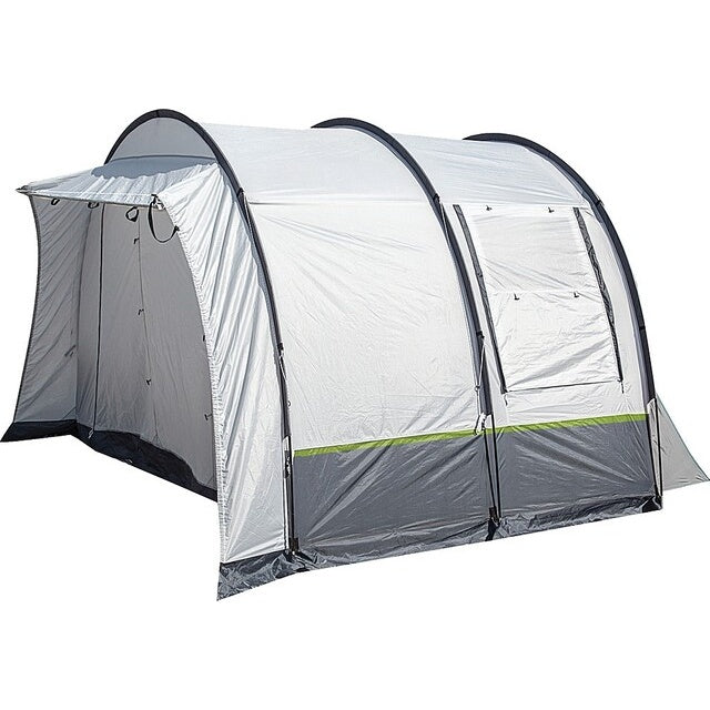 Entdecken Sie das Busvorzelt BRUNNER Beyond in elegantem dunkelgrau und hellgrau, das sich perfekt für Ihr Camping-Abenteuer eignet. Dieses freistehende Buszelt bietet ein ausgezeichnetes Preis-Leistungsverhältnis und ist ideal für Wohnmobile und Busse.