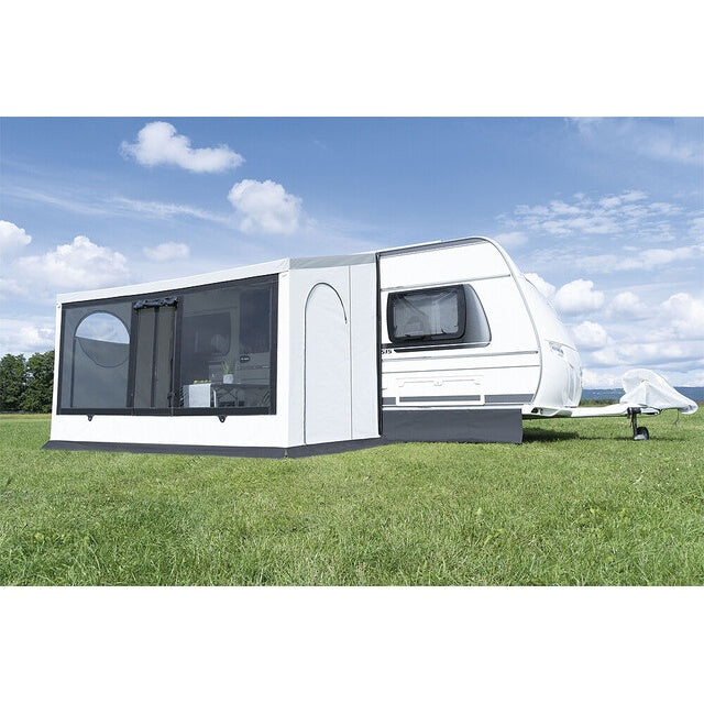 Das Winter-Vorzelt WIGO INUIT mit den Maßen 400 x 200 cm bietet Ihnen optimalen Schutz und Komfort für Ihre winterlichen Wohnwagen-Abenteuer. Hergestellt aus hochwertigem Polyvinylchlorid (PVC) und ausgestattet mit robusten Stahlgestängen, sorgt es für außergewöhnliche Stabilität und Langlebigkeit.