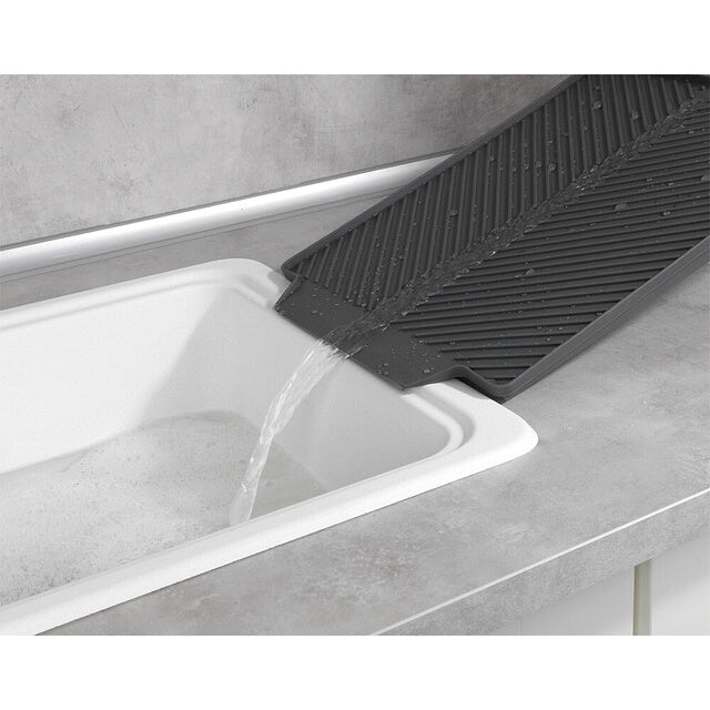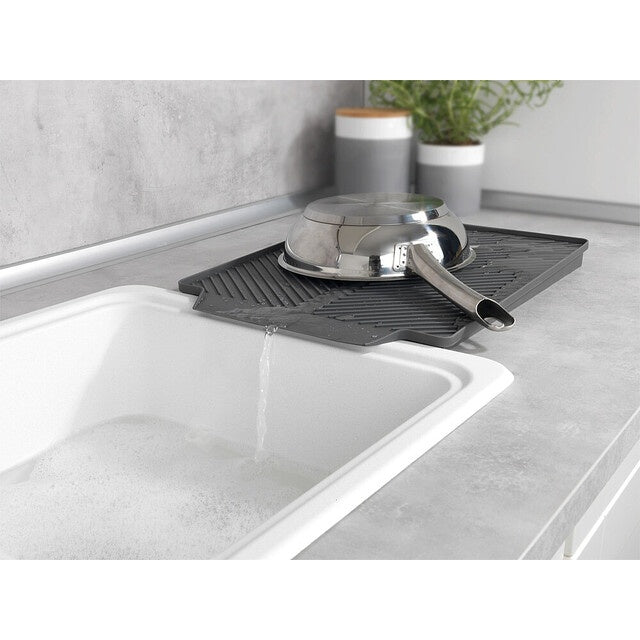Die praktische Abtropfmatte WENKO in elegantem Grau bietet Ihnen die perfekte Lösung für Geschirr und Besteck. Mit ihrer geneigten Fläche sorgt sie für einen optimalen Wasserablauf, sodass Ihr Geschirr schnell und effizient abtropfen kann. Ideal zur seitlichen Erweiterung des Spülbeckens, ist diese Abtropfmatte nicht nur funktional, sondern auch ein echter Blickfang in Ihrer Küche. Hergestellt aus robustem TPE (Thermoplastische Elastomere), ist sie langlebig und leicht zu reinigen. Optimieren Sie Ihre Spülgewohnheiten mit der WENKO Abtropfmatte!