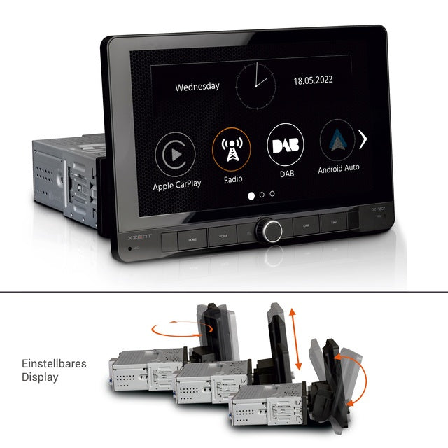 Die vertikale und horizontale Displayeinstellmechanik ermöglicht Ihnen die perfekte Anpassung des Bildschirms. Dank des integrierten UKW RDS Radios, DAB+ Tuners und zwei USB 2.0 Ports wird Ihr Fahrerlebnis noch angenehmer.